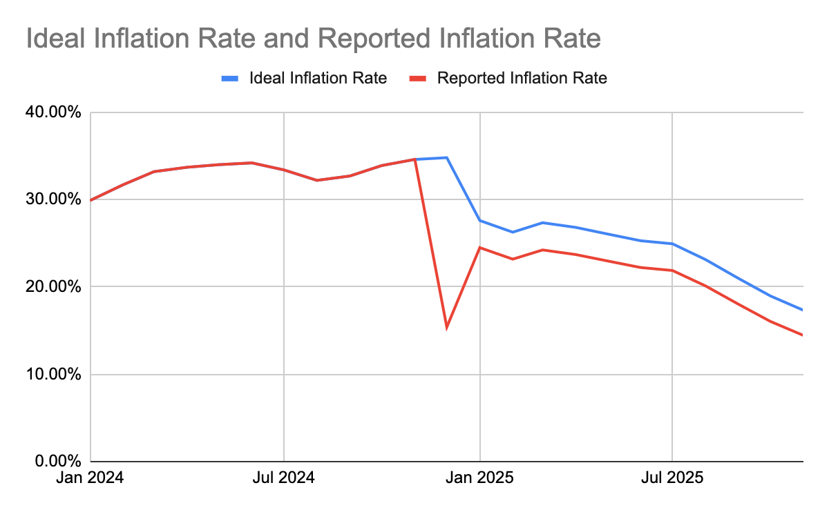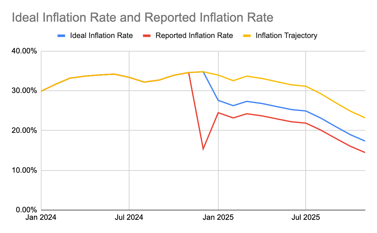 The implication is that 2025 inflation numbers were understated on average by 3.04%. The average inflation rate they reported up till November 2025 was 21.03%, compared to the actual average of 24.07% in the new CPI series published.