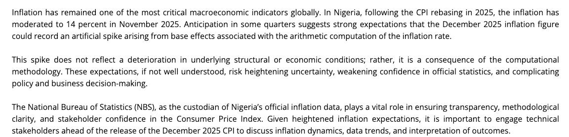 When it appeared that this would have consequences of very high inflation in December 2025, they decided to backtrack. Someone needs to tell the NBS that their duty is not to report low inflation numbers.
